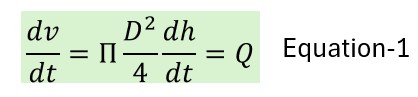 Based on mass conservation principle, the liquid volume in the vessel will increase according to the law: