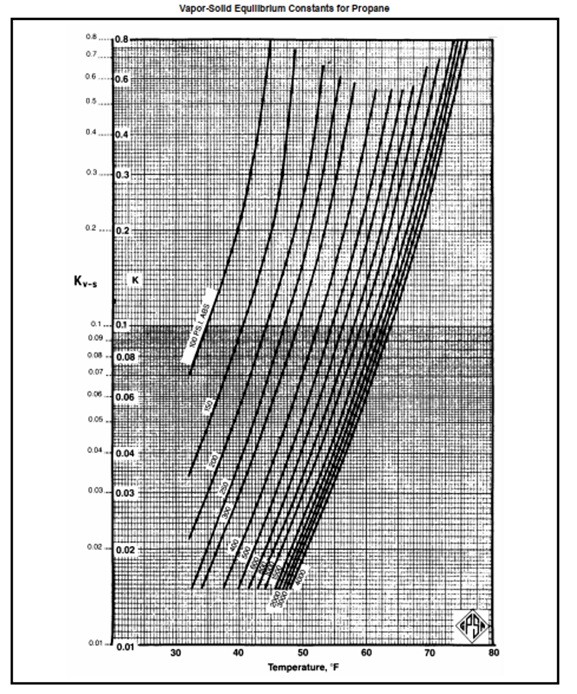 K-value for each hydrate forming molecule (methane, ethane, propane, isobutane, normal butane, carbon dioxide, and hydrogen sulfide) are shown below. Normal butane cannot form a hydrate by itself but can contribute to hydrate formation in a mixture.