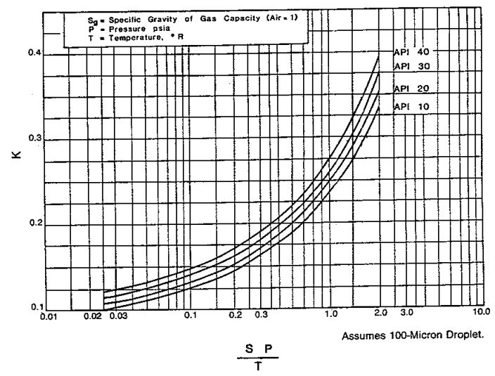 For S P/T 1.154 and oil gravity of 40o API, we get K value of 0.28.