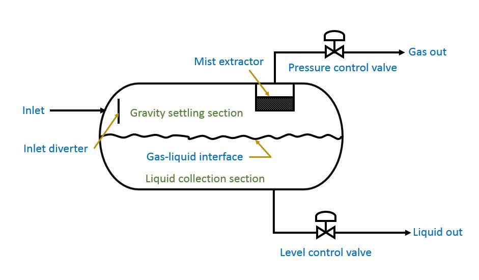Initial bulk separation of gas and liquid takes place in inlet diverter. The fluid mixture hits inlet diverter causing sudden change in momentum, because of the gravity difference, results in bulk separation of gas from liquid. The liquid droplet fall out of the gas stream to the bottom of vessel where it is collected.