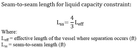 Seam-to-seam length (Lss) for liquid capacity constraint is calculated by using the following equation.
