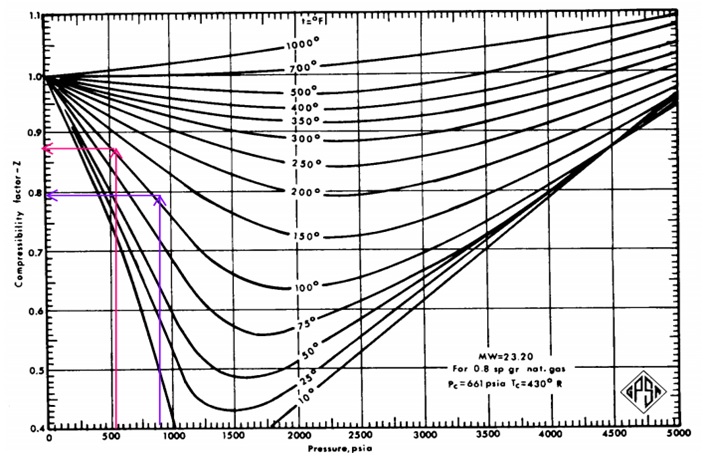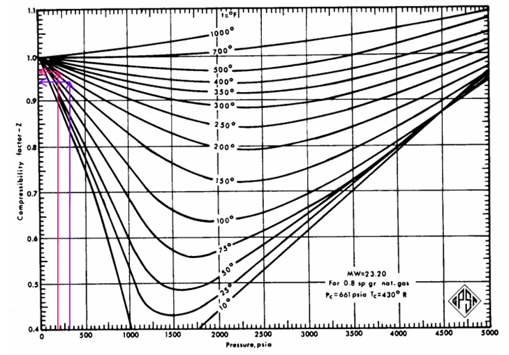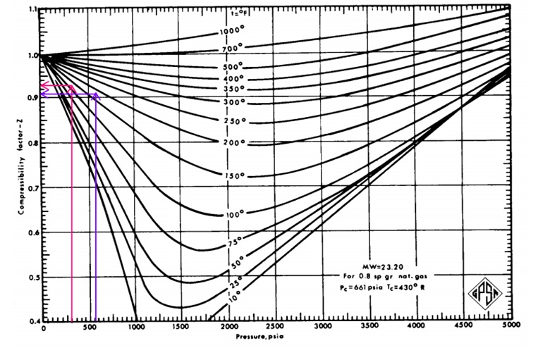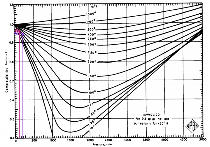 Based on operating condition above, we will check compressibility factor based on charts. Please note that each chart is function of gas molecular weight. So, ensure you use proper chart.