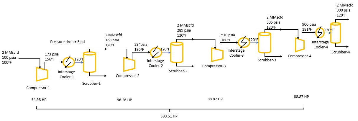 The method used to calculate reciprocating compressor is the same, whether it is two-stage, three-stage, or four-stage. There are several steps which is repetitive.