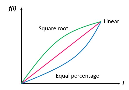Valve characteristic is selected from among the linear, square root, or equal percentage categories to render the control loop nearly linear over the entire operating range.