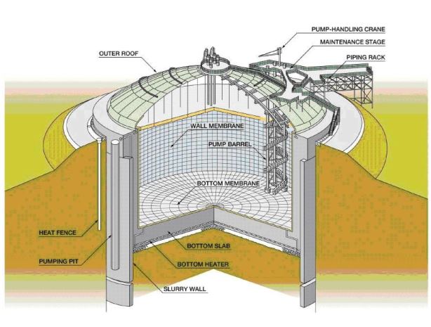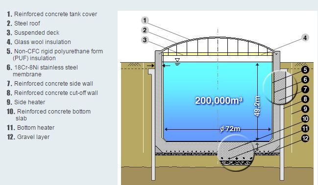 The advantages of in-ground storage tanks is required less space area and reduced seismic loading but are very expensive and required longer time to build – about 4 to 5 years compared to 3 years for a tank built above ground.