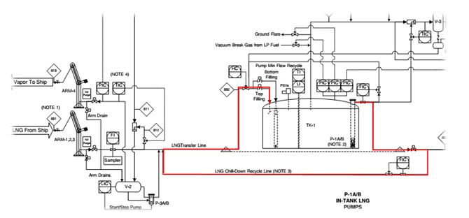 BS EN 1473 also stated requirement of LNG recirculation. In section 9, it is stated that part of auxiliary process systems are