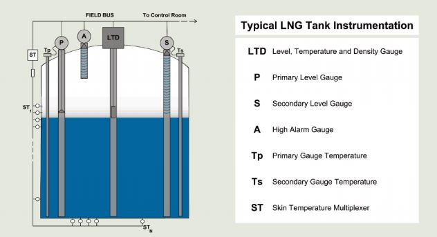 Typical Instrumentation in LNG Tank
