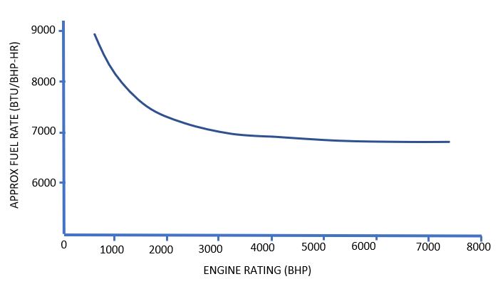 Based on graph above, approximate fuel rates are around 7000-8900 Btu/Bhp-hour. The higher the engine rating, the lower fuel rates will be.