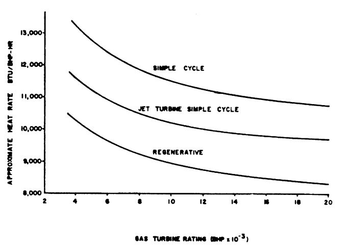 Gas turbine heat rates vary considerably. They are function of gas turbine rating and type of turbines, which are simple cycle, jet turbine simple cycle, or regenerative.
