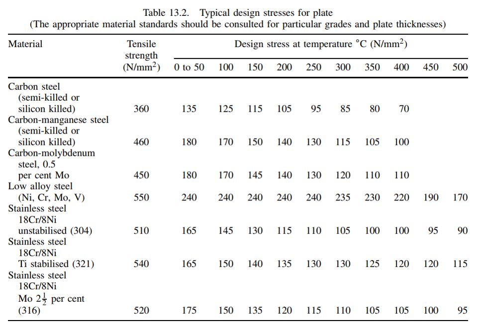 The vessel is to operate at a pressure of 16 bar (absolute) and design temperature of 300oC. The material of construction will be plain carbon steel. Welds will be fully radiographed. A corrosion allowance of 2 mm should be used.