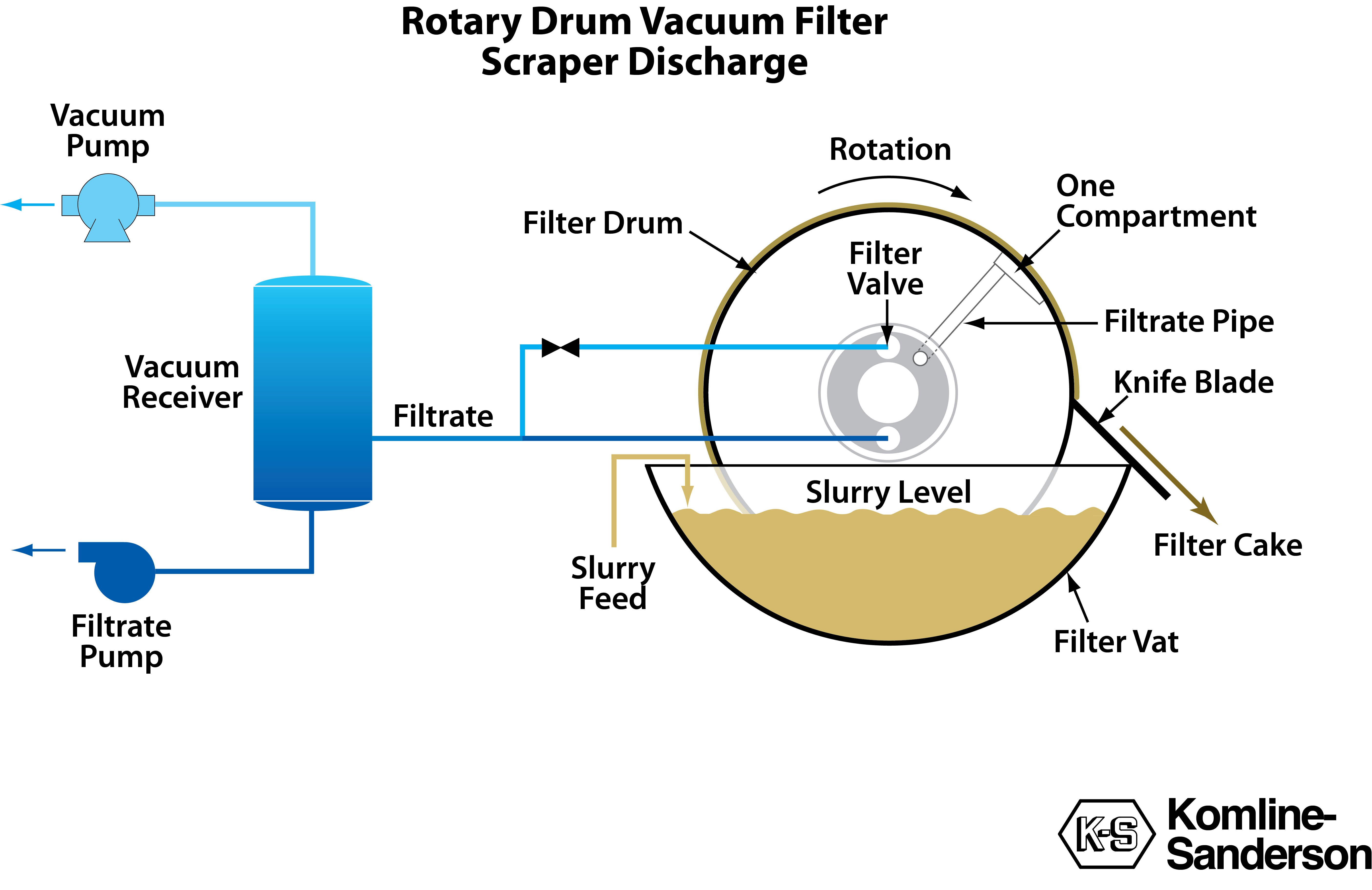 In all continuous vacuum filters, liquor is sucked through a moving septum to deposit a cake of solids. The cake is moved out of the filtering zone, washed, sucked dry, and dislodged from the septum.
