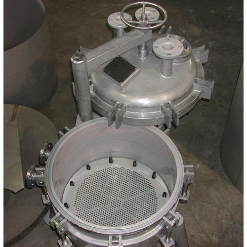 Shell-and-leaf filters may be used for filtering under higher pressures than are possible in a plate-and-frame press. In the horizontal-tank design, a set of vertical leaves is held on retractable rack. During operation, the leaves are inside the closed tank. Feed enters through the side of the tank and filtrate passes through the leaves into a discharge manifold.