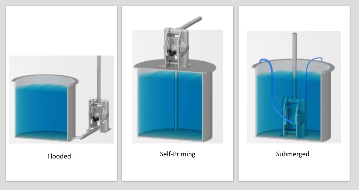 I checked in several vendor brochures that air-diaphragm pump can be installed in flooded system, self-priming, and submerged.
