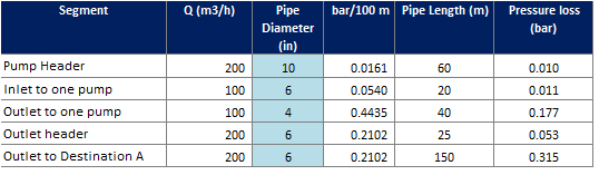 Picture below show the result of pressure loss due to piping to Destination A.