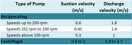 - Table below can be used as preliminary criteria for sizing suction and discharge of pump