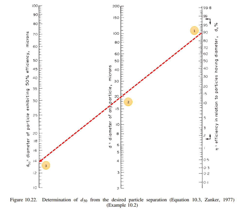 d50 = the particle diameter for which the cyclone is 50% efficient, μm