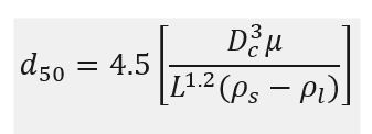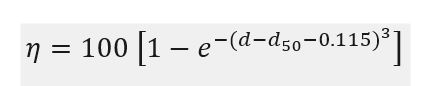 Equation above determines the hydrocyclone chamber diameter necessary to separate the so-called d50 particle diameter as a function of the slurry flow velocity and the physical characteristics of the liquid and solid. The separating efficiency for other particles is related to the d50 diameter which is based on a formula: