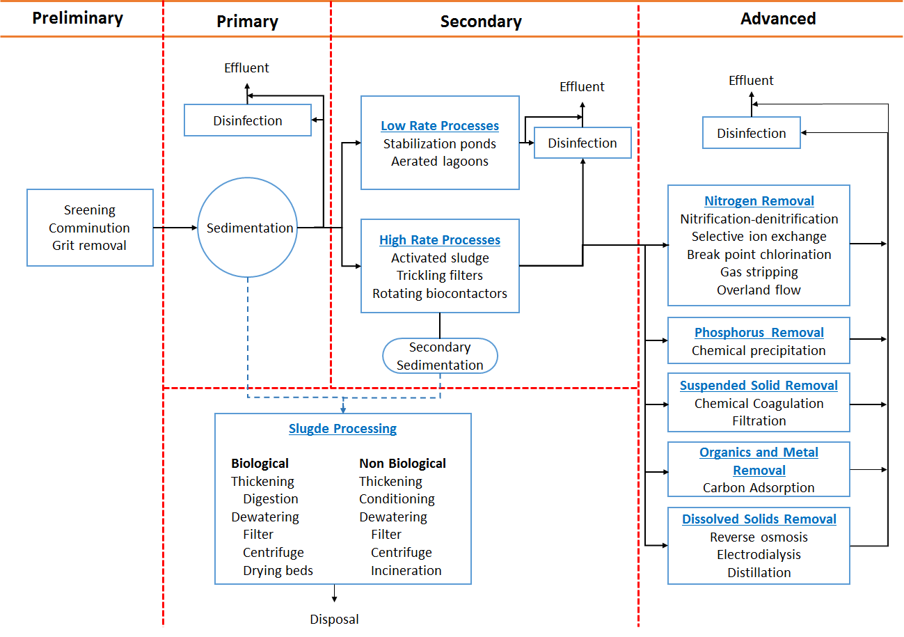 Generalized flow diagram for municipal wastewater treatment