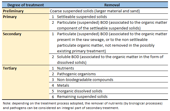 Degree of wastewater treatment
